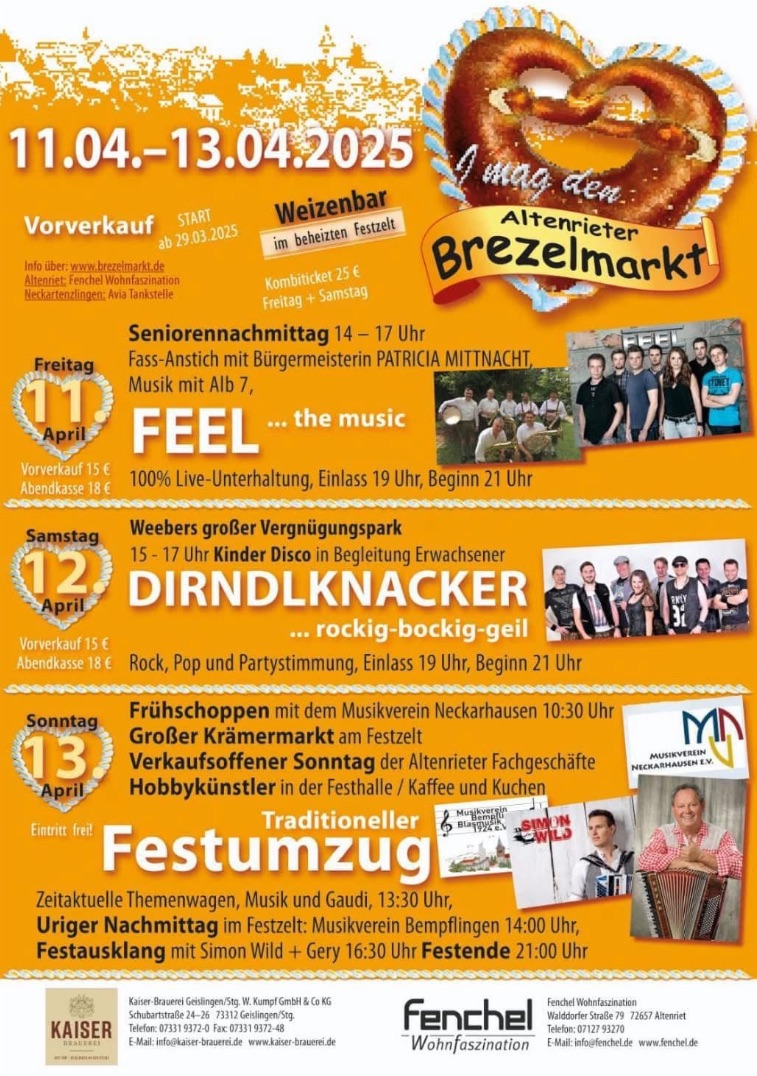 Brezelmarkt ist Herzenssache, besuchen Sie uns am 11.04. bis 13.04.2025 in Altenriet.
